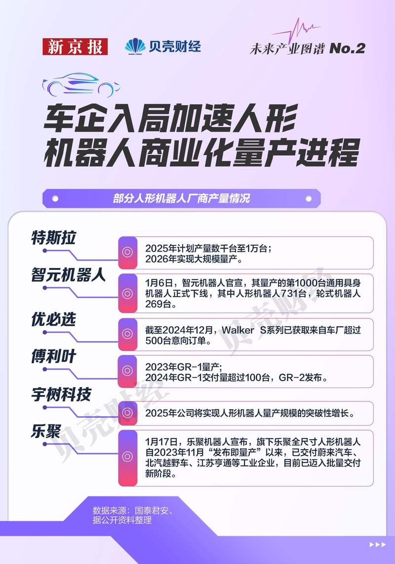 新京报贝壳财经记者发现炒股配资软件哪个最好,车企入局也加速了人形机器人商业化量产的进程。截至今年1月,乐聚人形机器人已经交付蔚来汽车、北汽越野车,乐聚计划将人形机器人年产能提升至200台。宇树科技表示,2025年公司将实现人形机器人量产规模的突破性增长。