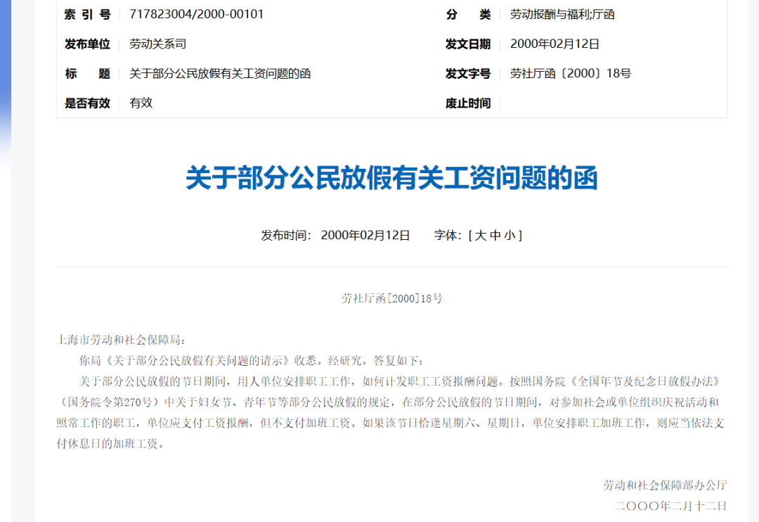 据《劳社厅函〔2000〕18号》文件规定,在部分公民放假的节日期间,对参加社会或单位组织庆祝活动和照常工作的职工,单位应支付工资报酬但不支付加班工资。