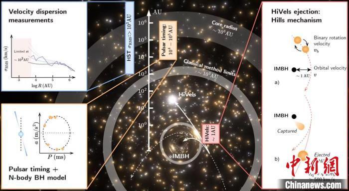 研究团队基于欧洲空间局盖亚空间望远镜(Gaia)、中国郭守敬望远镜(大天区面积多目标光纤光谱天文望远镜,LAMOST)以及多个光谱巡天数据,分析了近千颗高速星及银河系百余个球状星团的轨道演化,发现编号为J0731+3717的高速星在约2000万年前,以接近550千米每秒的超高速度从球状星团 M15中被弹射。这一极高的弹射速度最可能源于“引力弹弓效应”,从而为球状星团 M15中心存在中等质量黑洞提供了有力的动力学证据。